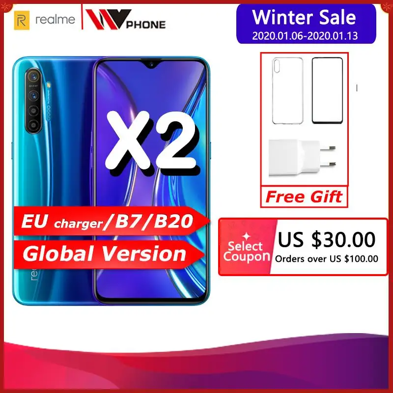 realme X2 Global version Moblie Phone 6.4'' Full Screen Snapdragon 730G 64MP Camera NFC 30W Fast Ch